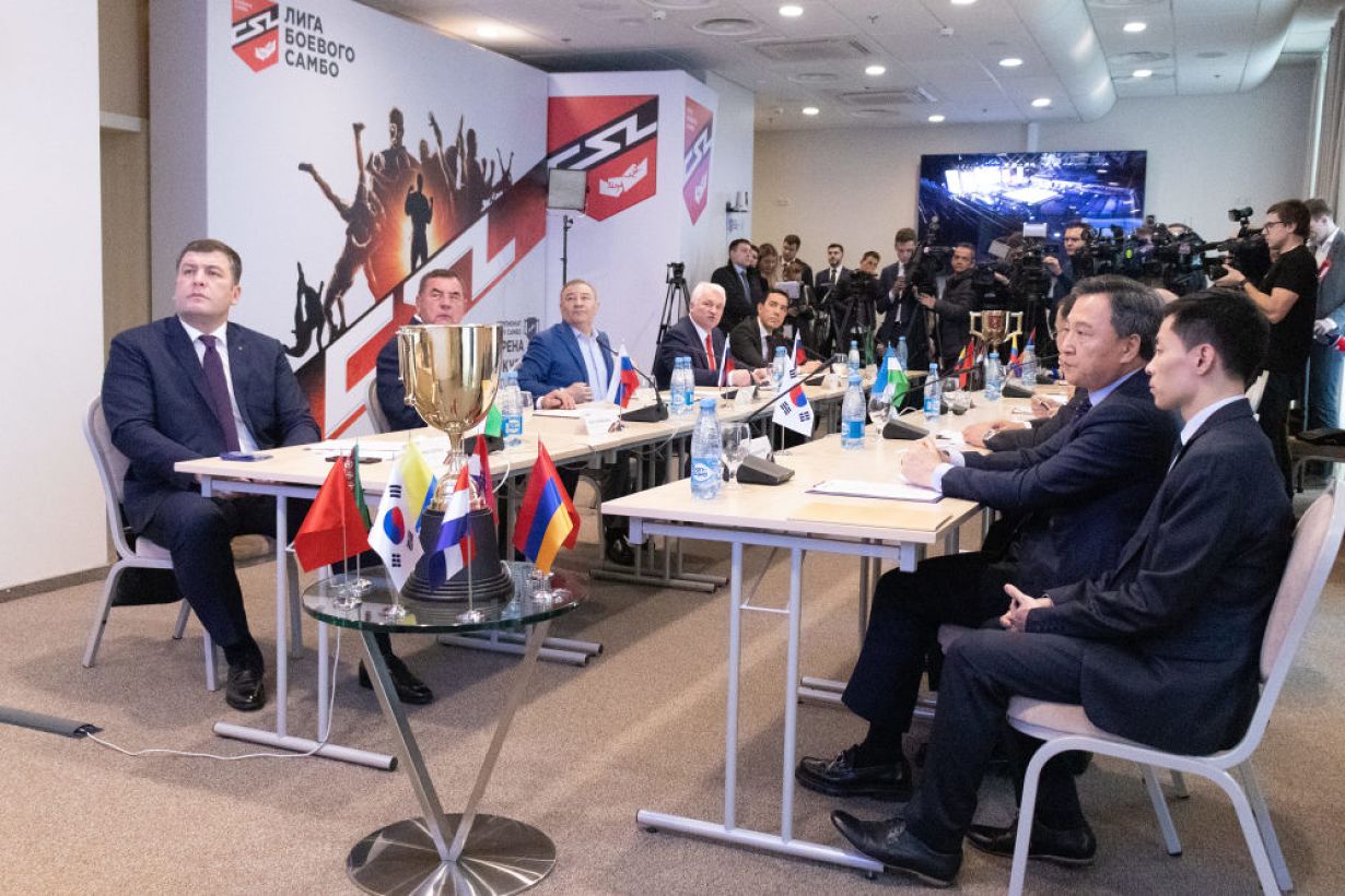 За круглым столом встретились: президент Лиги боевого самбо Аркадий Ротенберг, президент Международной федерации самбо Василий Шестаков, президент Всероссийской и Европейской федераций самбо Сергей Елисеев, вице-президенты ФИАС–руководители континентальных федераций самбо Аламжон Муллаев, Далил Скалли, Омар Лопера, президенты национальных федераций самбо — Сонгчон Мун (Республика Корея), Алишер Алимов (Республика Узбекистан), Микаэл Айрапетян (Республика Армения), а также генеральный секретарь НОК Туркменистана Азат Мурадов.