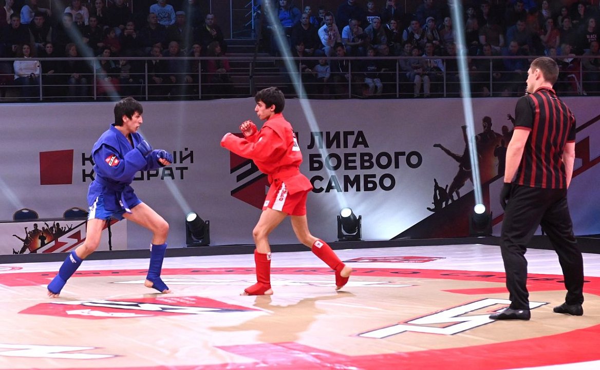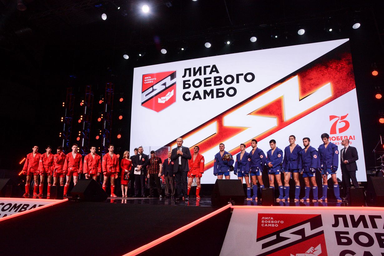 14 мужчин юниорской сборной страны бесстрашно сражались за чемпионский титул. Победителями первого турнира Лиги боевого самбо стали: Нурулло Махмадов, город Казань; Армен Тадевосян, город Можайск; Дмитрий Сиренко, город Энгельс; Михаил Коновалов, город Санкт-Петербург; Залим Керимов, город Санкт-Петербург; Темерлан Мякиев, город Москва. В финале вечера президент России Владимир Путин поздравил спортсменов со сцены и вручил кубок победителю в последней весовой категории до ста килограммов Евгению Дубине из города Санкт-Петербург.