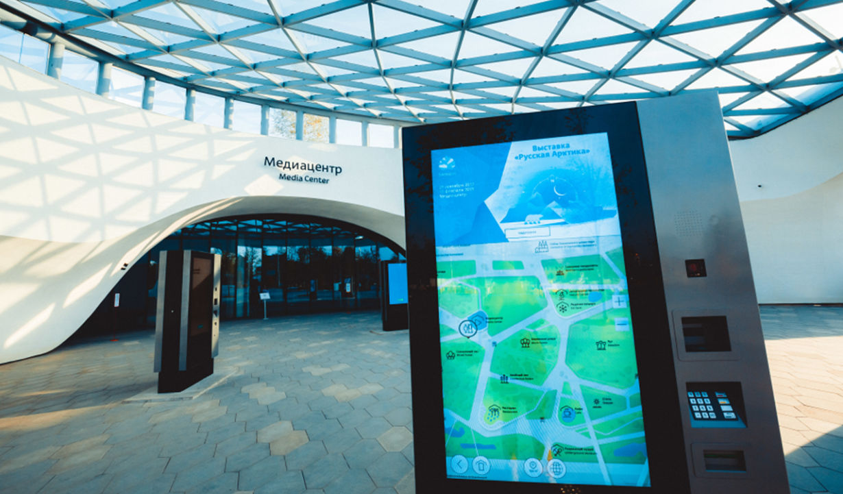 В работе находится интерактивный стенд, который будет представлять собой видеостену в холле медиацентра с возможностью демонстрации на ней роликов в формате 360 градусов, а также с другим интерактивным контентом, таким как историческая панорама, нарисованная профессиональными художниками и архитектурный калейдоскоп.