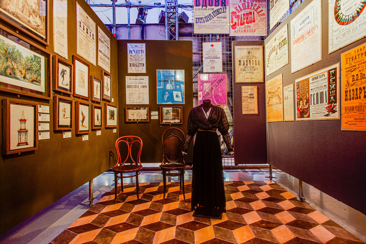 В рамках выставки зрители могли отправиться в путешествие во времени и увидеть четыре века существования отечественного театра, начиная с XVIII и заканчивая XXI столетием. Экспозиция была разделена на следующие темы: "Крепостной театр", "Императорские театры", "МХТ — Мейерхольд — Таиров — Русский авангард", "Театр в годы Великой Отечественной войны", "Советские театральные художники", "Театр для детей", "Новая театральная генерация (театр сегодня, лица нашего времени)". Но посетители могли увидеть на выставке даже вещи подревнее: Новгородский музей-заповедник привез коллекцию скоморошьих масок, а из Хакасского национального краеведческого музея им. Л.Р.Кызласова доставили серию подлинных эстампажей наскальной живописи с изображением древних масок и танцующих фигур.